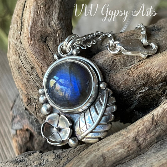 Mehndi Floral Labradorite Mini Sterling Silver .925 Pendant Necklace