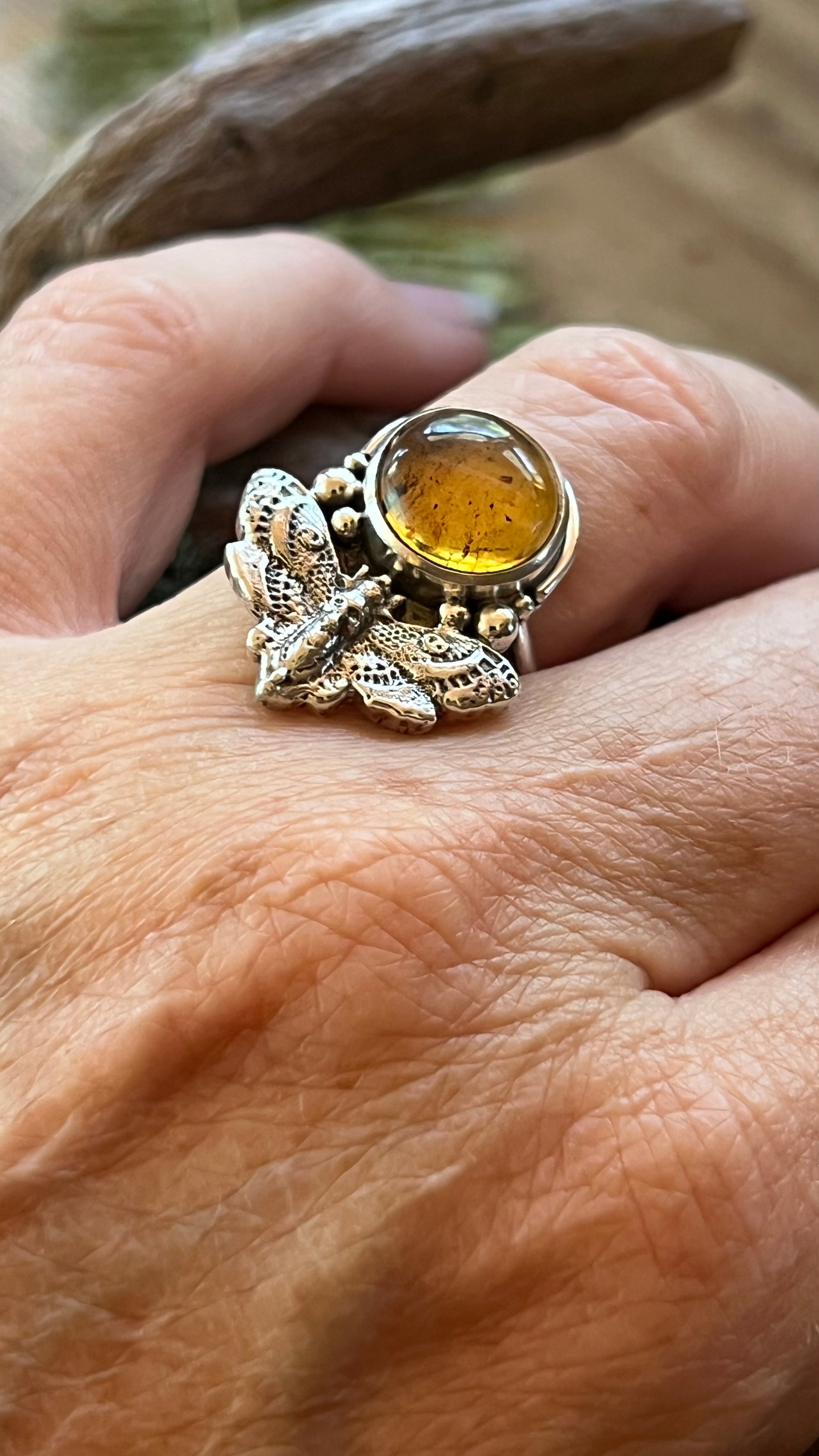 Hawks Moth Amber Ring .925 size 7