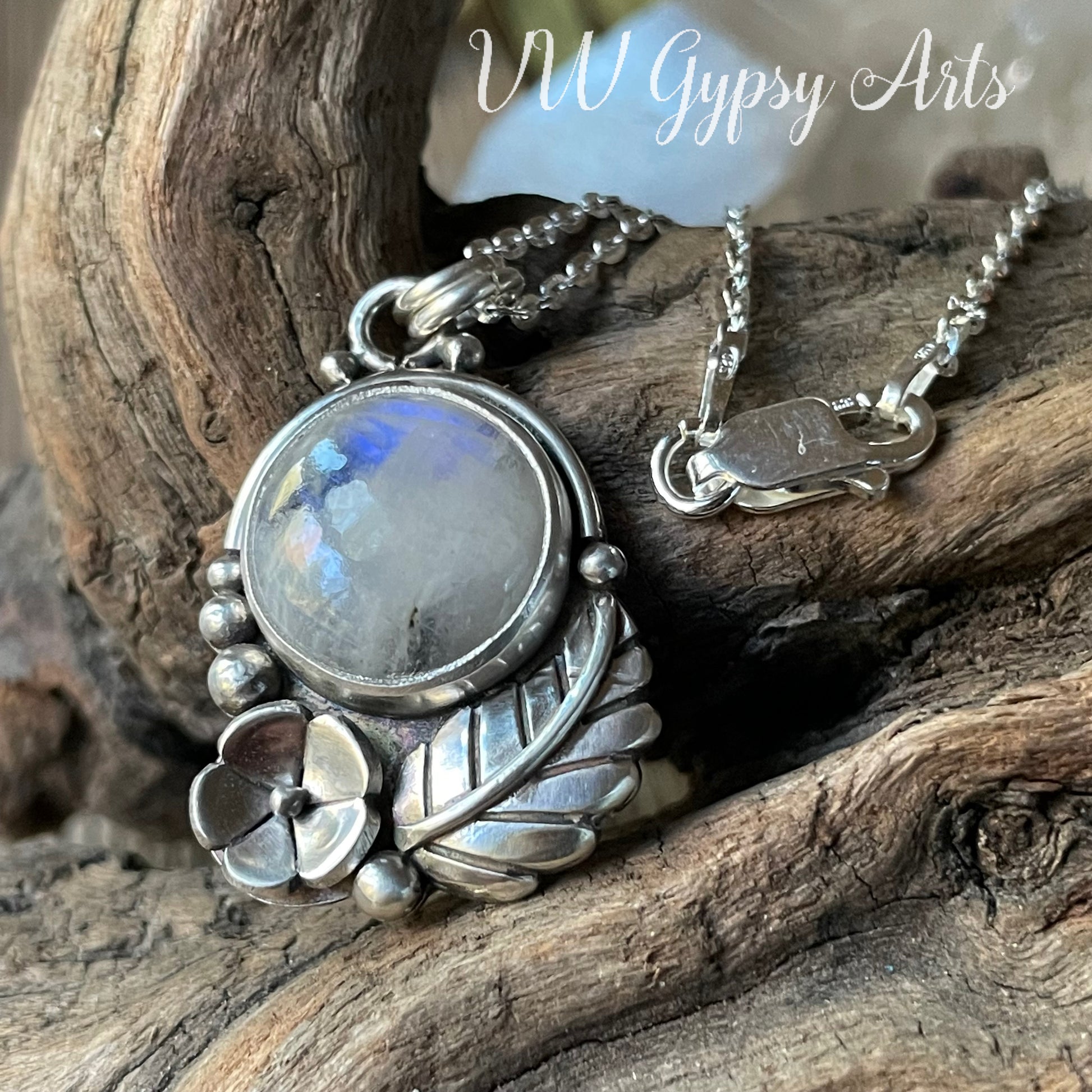 Moonstone- there is an undeniable connection with our sister the moon, her magical light that fills our night skies. The ebb and flow as she orbits the earth, pulling and pushing the tides of the ocean and of all women. This stone named in honor of her captures her iridescent glow, clear and white with blue flashes of magic. The moon is a symbol of light and hope and femininity as is this stone. I love wearing this stone in honor of our goddess moon.