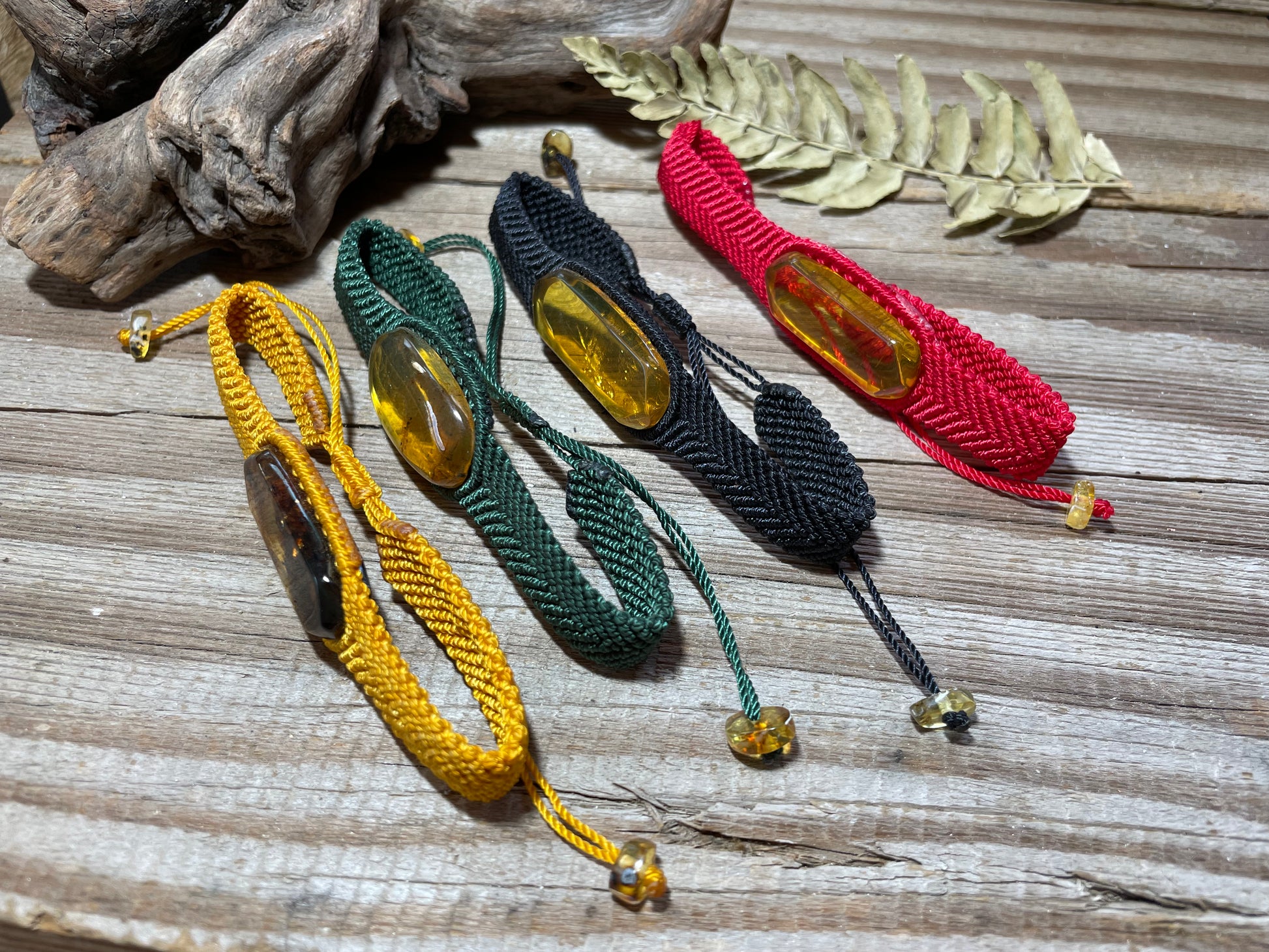 This beautiful Ambar stone was hand wrapped in this simple chevron and Macrame Design as I traveled through Mexico & Guatemala. The source of most of my beautiful Jade & Ambar Stones. Both bringing the magic and mystery of the Mayan region into my work.