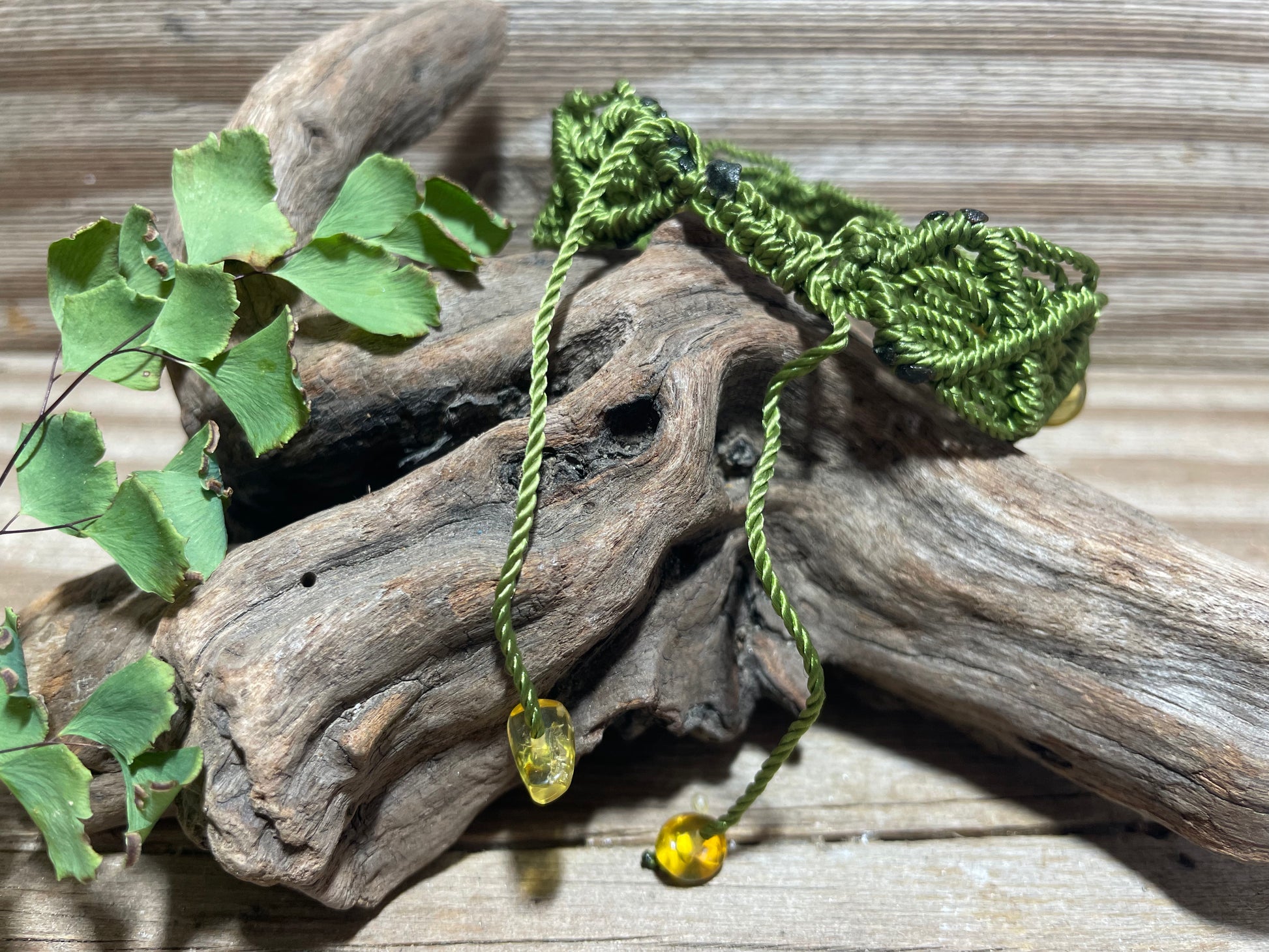 These beautiful Ambar Beaded soft macrame bracelets were made as I traveled through Mexico & Guatemala. The source of most of my beautiful Jade & Ambar Stones. Both bringing the magic and mystery of the Mayan region into my work.