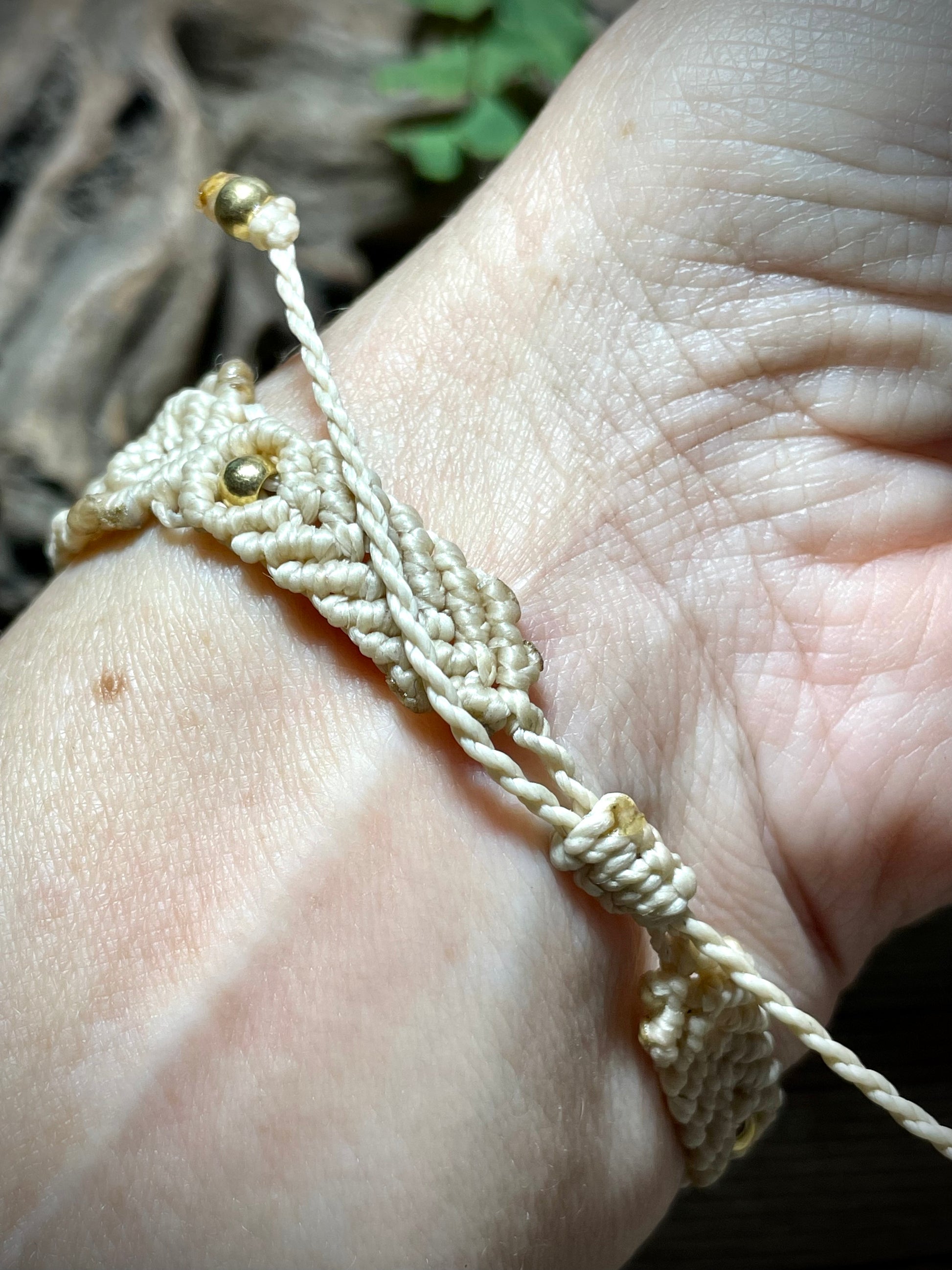 Gold Sheen Obsidian Cream Macrame Bracelet