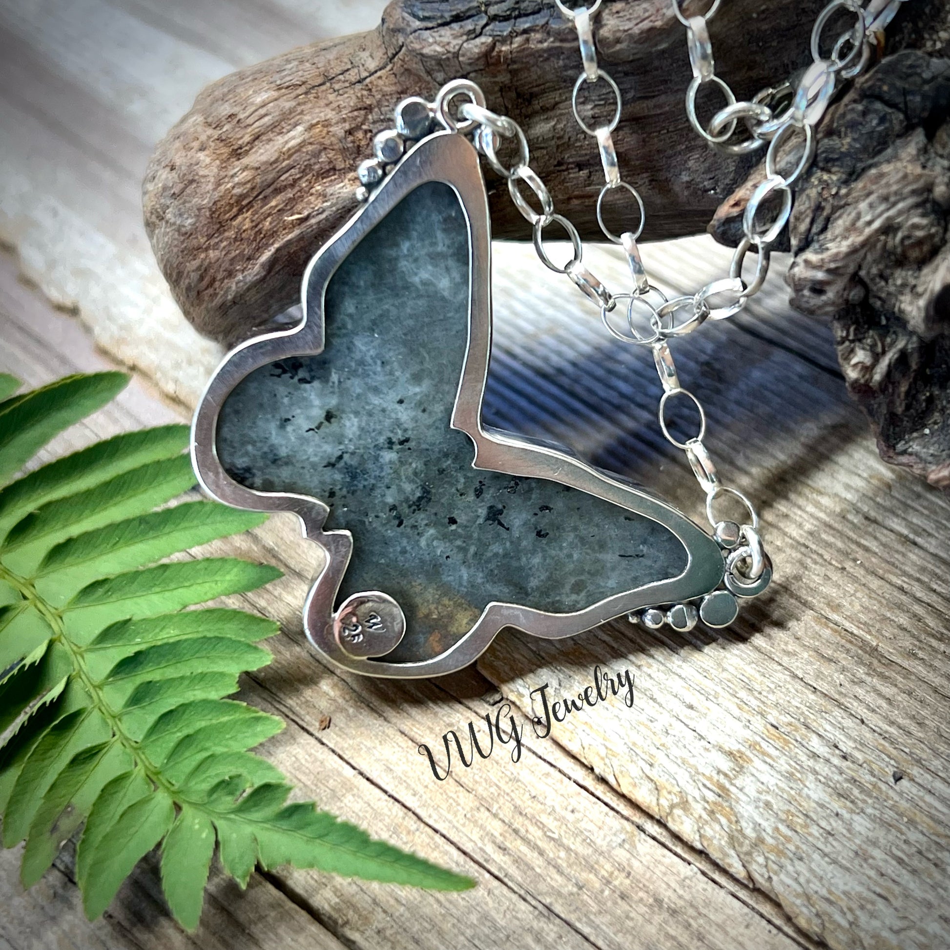Hawk Moth Labradorite .925 LG Stone Necklace