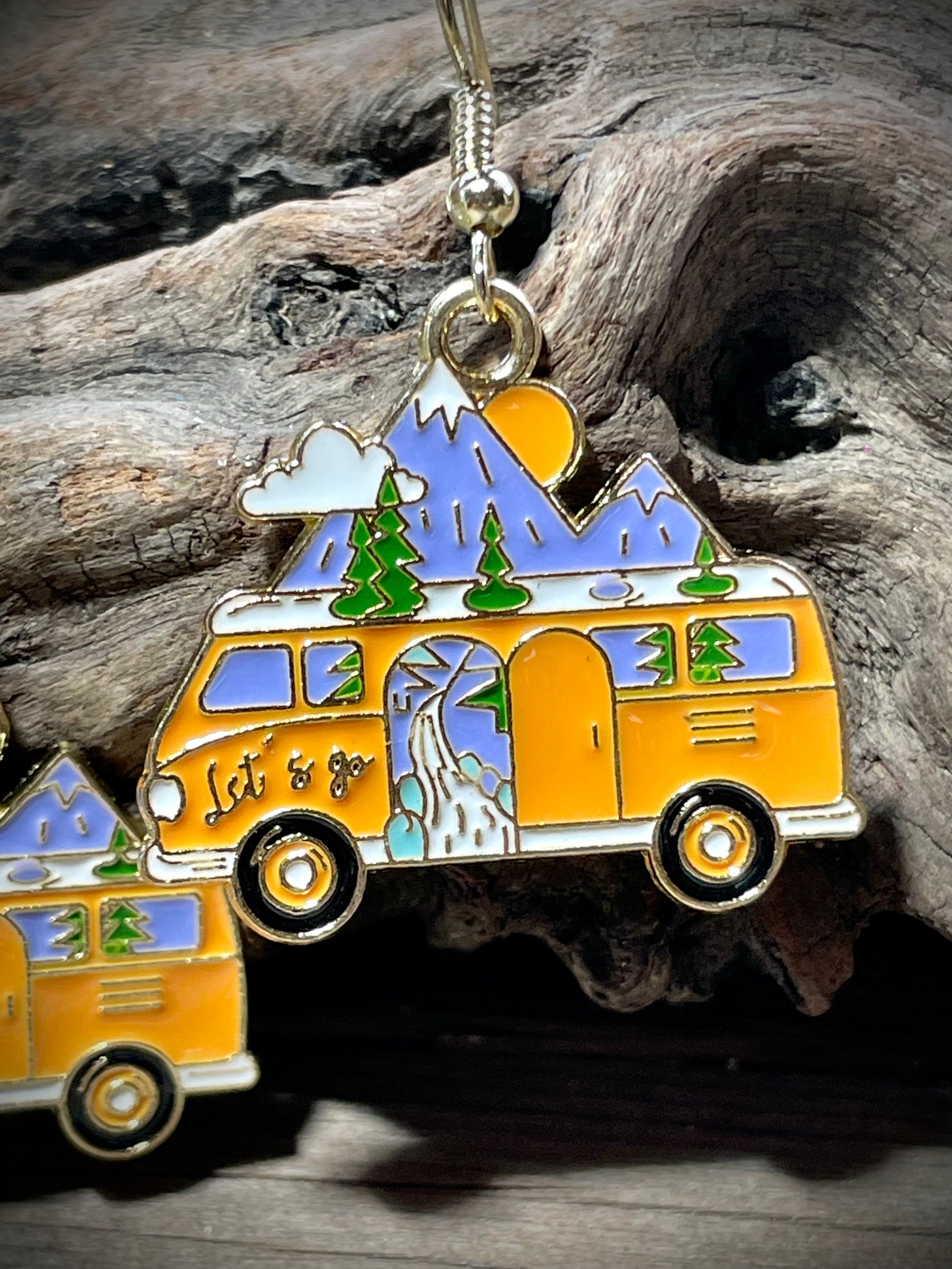 I found these fun metal enameled buses and just fell in love with them.  The embrace the freedom of adventure and capture that fun hippy style.