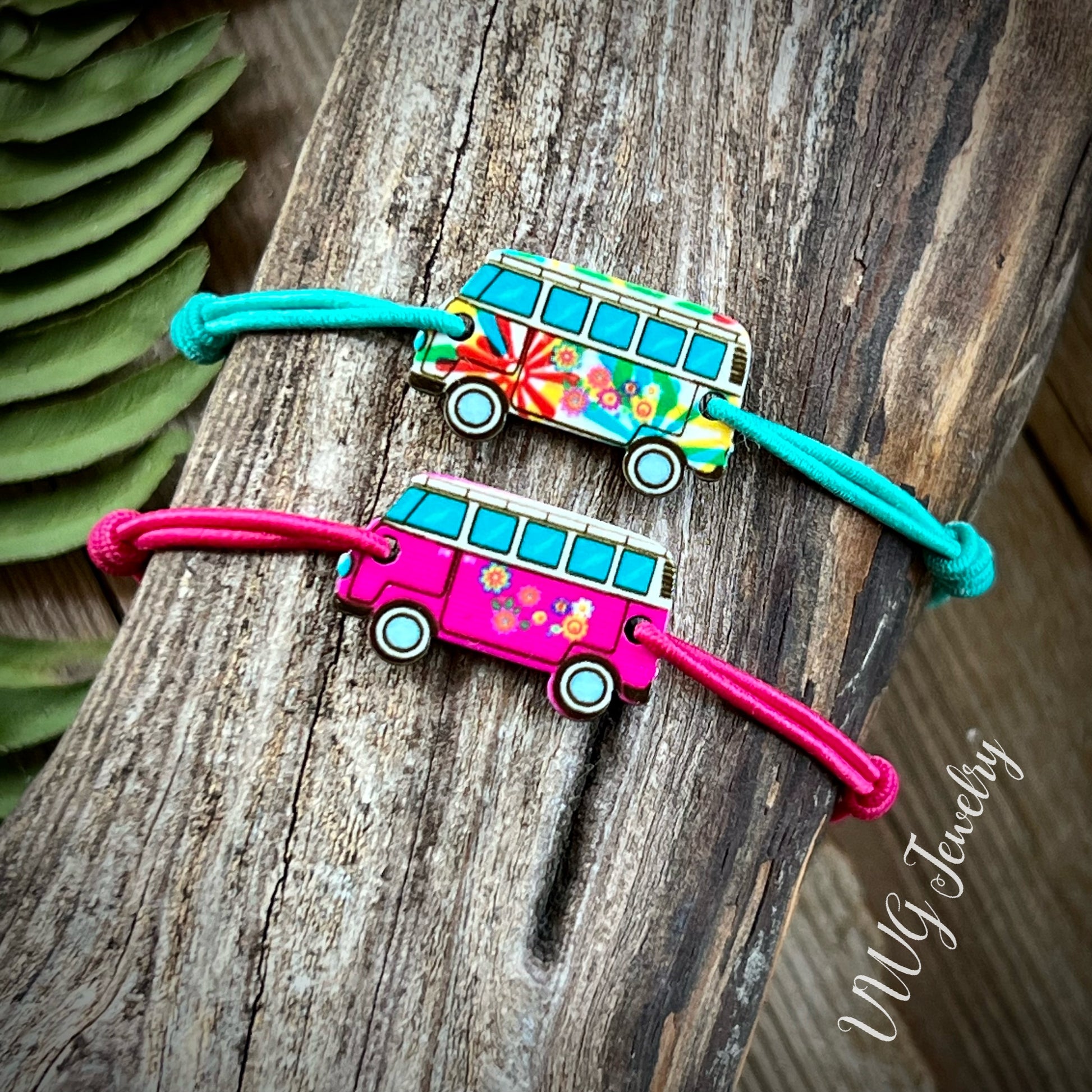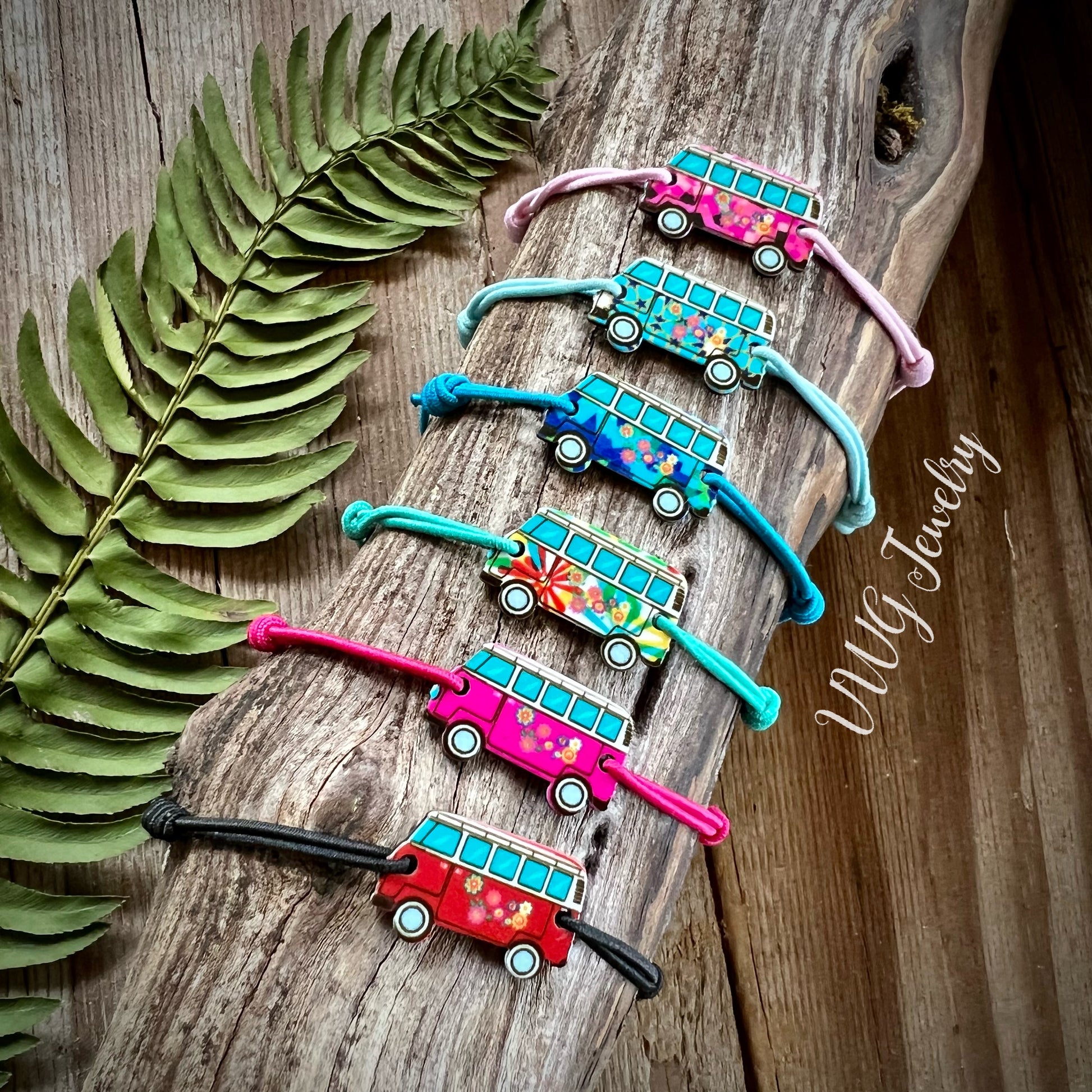 These cute hippy, flower painted bus are fun to collect, stack or share. One for you and one for you best friend or favorite family member. Simply slide the knots to make them bigger or smaller firing everyone from a toddler to dad.
