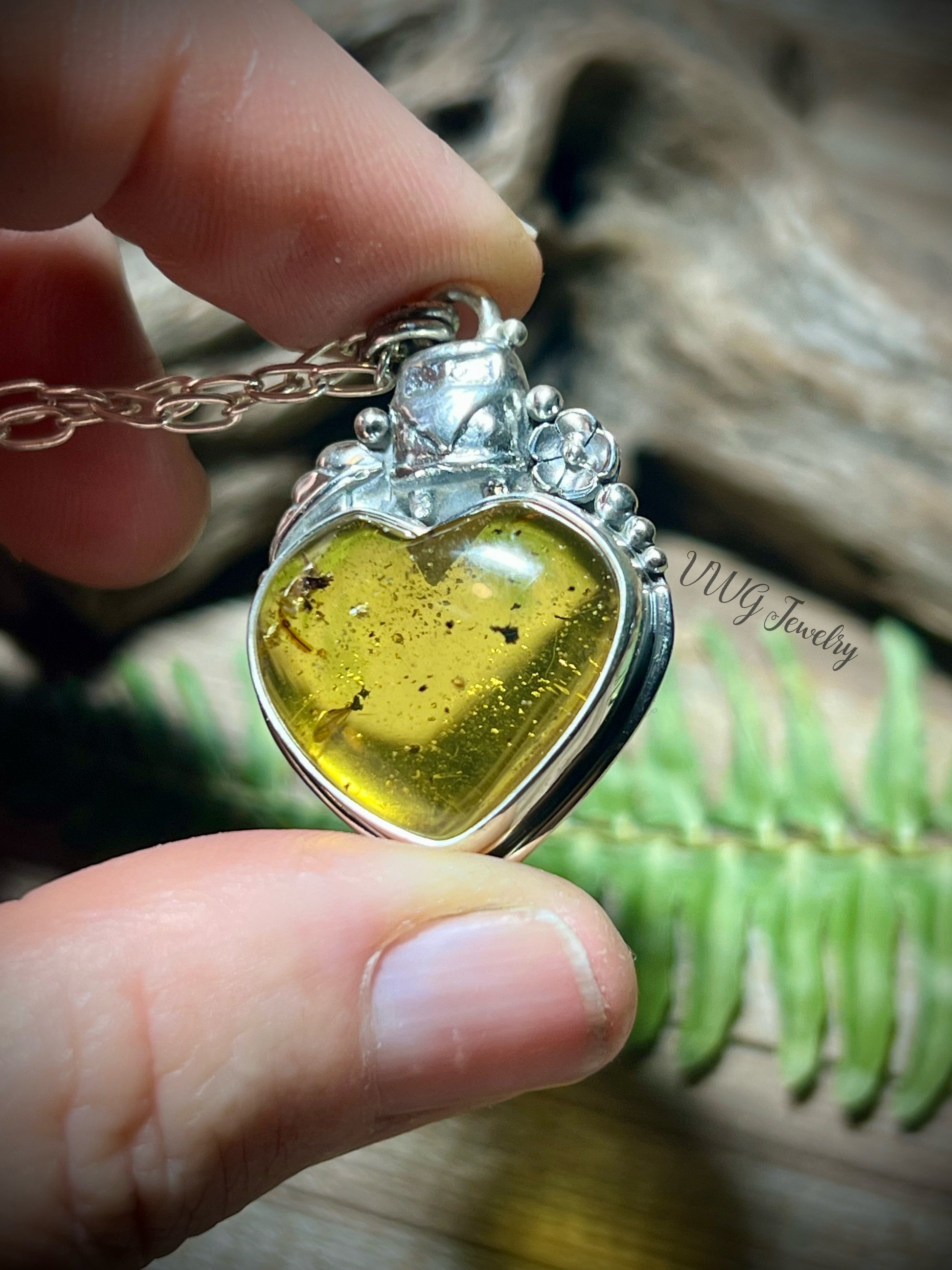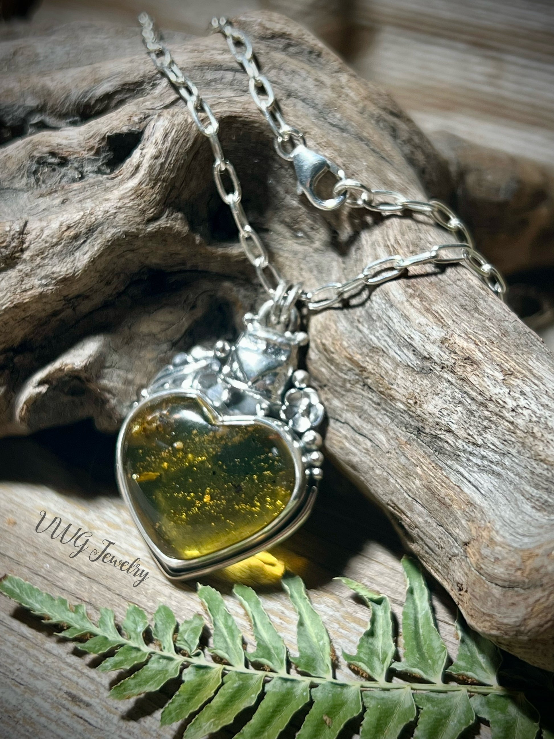 Love Bus Amber Heart & Sterling Necklace