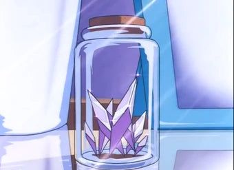 Also available as a set are the 18mm Rose Quarts Bead “Jewel” and Kagomes glass jar with Shards. The shards were created by carefully breaking the same 18mm bead included in this set and used on the necklace. This replica represents the jar Kagome takes with her to the present.